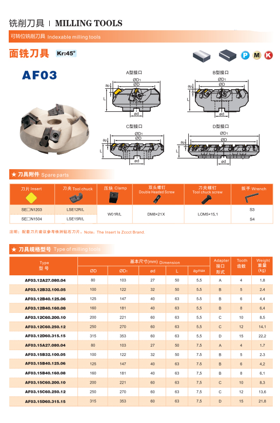 AF03 Series 45 Degree Milling Inserts