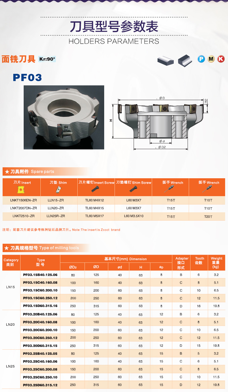 PF03 Series 90 Degree Face Milling Tools
