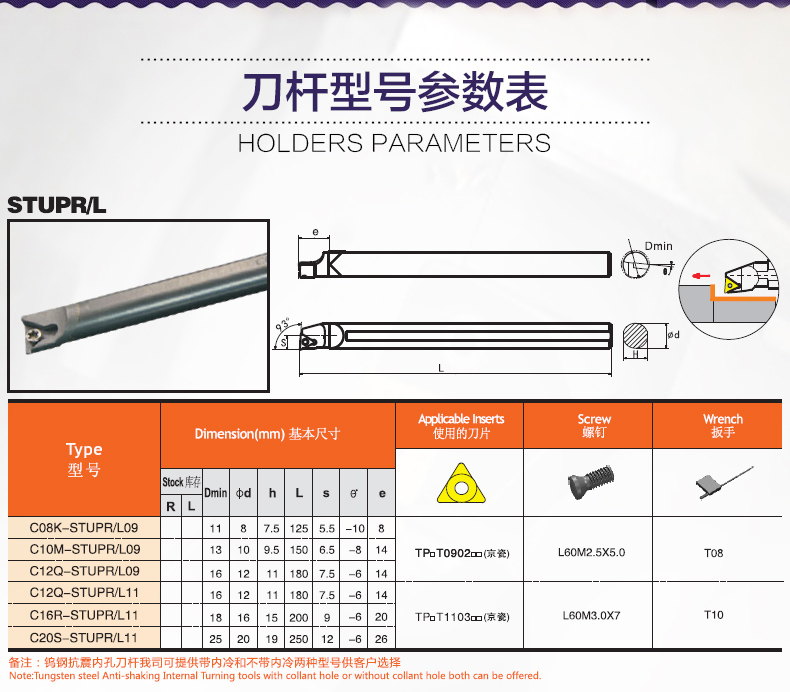 Steel Anti-Vibration Bore Turning Toolholder C08K/10M/12Q/16R/20S-STUPR/L09/11