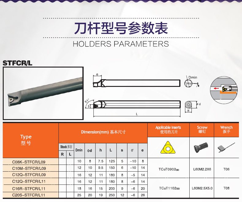 Tungsten Steel Anti-Vibration Bore Turning Toolholder C08K/C10M/C12Q-STFCR09/STFCL09